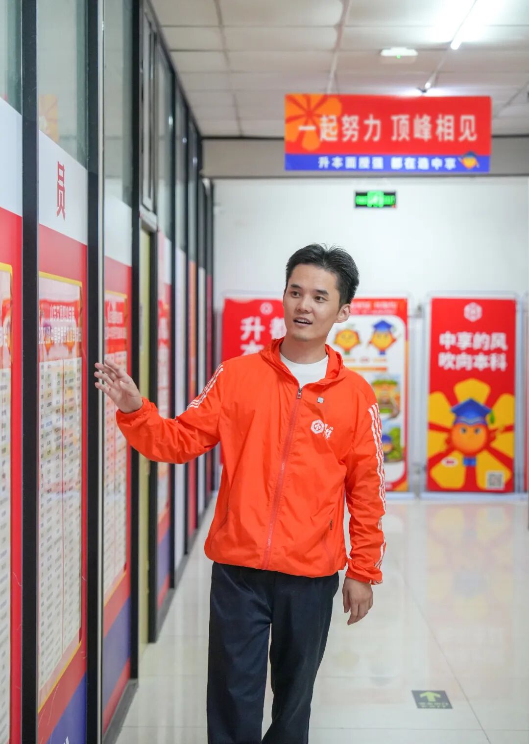 中享思途的一间教室里贴满了学员们的标语贴纸——“下一站本科见”。这句简单的话语中,藏着一群年轻人的不甘心。徐明广每次路过这间教室都会驻足,他说这贴的不是标语,是孩子们给自己的“战书”。