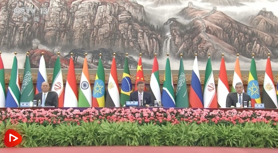 交得其道,千里同好;固于胶漆,坚于金石。金砖各国要以坚韧不拔之志、敢为人先之勇、识变应变之谋,把金砖打造成促进全球南方团结合作的主要渠道、推动全球治理变革的先锋力量。要坚持多边主义,捍卫国际公平正义,维护以联合国为核心的国际体系和以国际法为基础的国际秩序,积极推进国际关系民主化,着力提升全球南方国家的代表性和发言权。要坚持开放共赢,维护国际经贸秩序,坚定不移推动构建开放型世界经济,维护以世界贸易组织为核心的多边贸易体制,抵制一切形式的保护主义,倡导普惠包容的经济全球化,将发展置于国际议程的中心位置。要坚持团结合作,凝聚共同发展合力,携手应对外部风险挑战,在经贸、金融、科技等领域打造更多合作成果,更多更好惠及各国人民。
