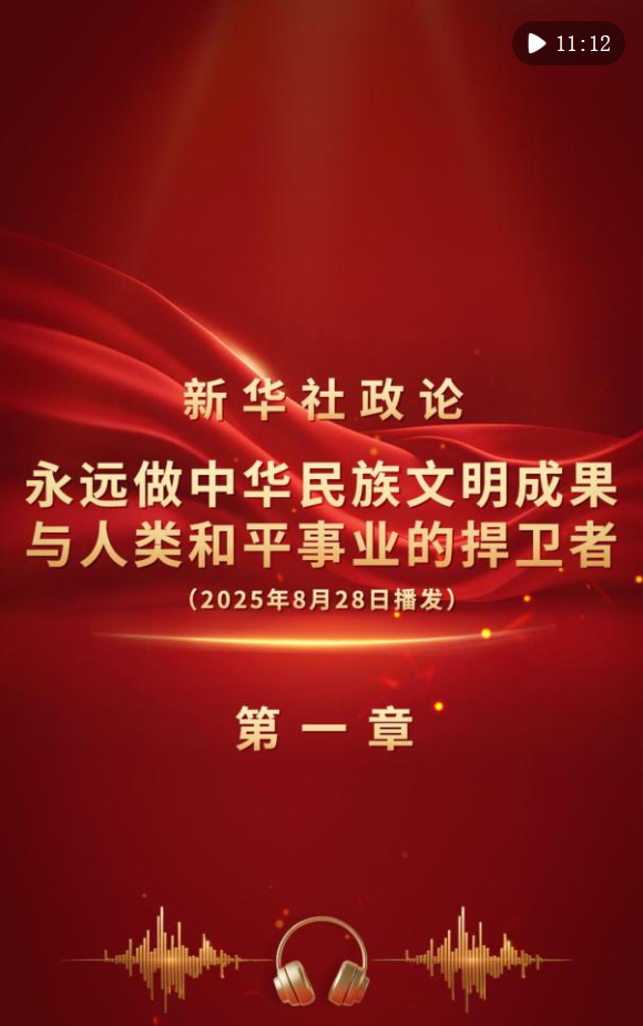 新华社8月28日播发《新华社政论|永远做中华民族文明成果与人类和平事业的捍卫者——写在中国人民抗日战争暨世界反法西斯战争胜利80周年之际》。我们邀请诵读嘉宾任志宏演播“第一章”。