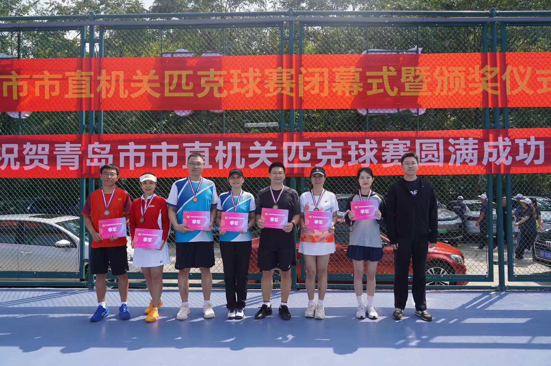 9月20日上午,随着决赛最后一记精彩击球落地,由市委市直机关工委联合市体育局、市总工会、市北区人民政府共同主办的2025年青岛市市直机关匹克球比赛,在市北体发匹克球运动公园正式落下帷幕。历经4个周末、7个比赛日的激烈角逐,近300名机关干部职工在赛场上挥洒汗水、比拼技艺,最终决出女双、男双、混双三个项目的冠亚季军,生动展现了“送健康进机关”活动的积极成效,凝聚起奋楫争先、同心共进的澎湃动能。