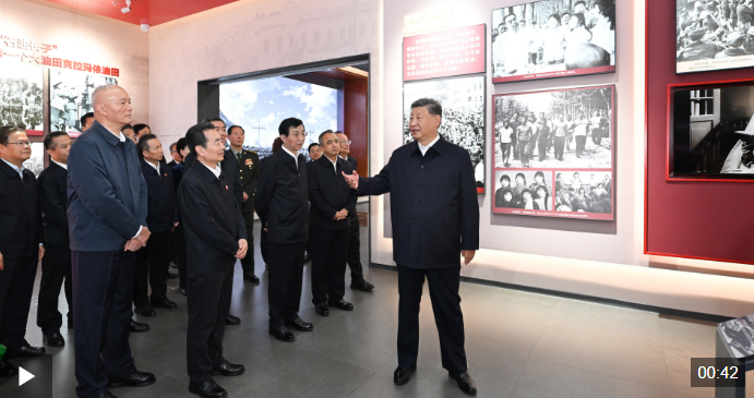 24日上午,习近平总书记在乌鲁木齐文化中心展览馆参观新疆维吾尔自治区成立70周年主题成就展。该展览全景展现了70年来在中国共产党坚强领导下、在全国各地大力支援下,新疆各族人民团结一心、艰苦奋斗、顽强拼搏取得的辉煌成就。