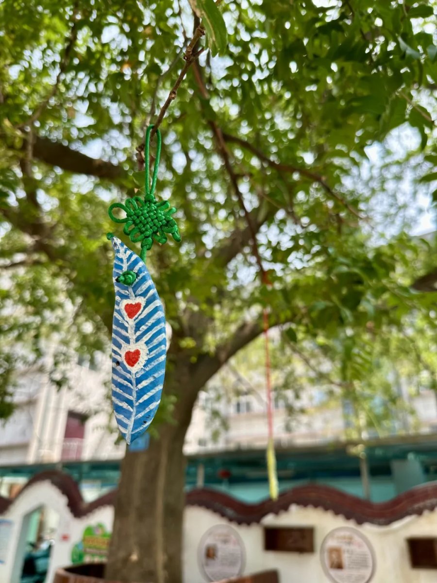 皂荚树本身也为孩子们动手能力提供了丰富的素材,枝繁叶茂的皂荚树被学生们画进了自己的作品里,挂满枝头的皂荚果成为学生们研究的对象。田园老师在学生中成立了研究型学习小组,他们开展的一项研究就是“皂荚果创造大变身”,学生们将皂荚果制成了肥皂、灯笼、挂件和拼图等创意作品。“皂荚浑身都是宝,我们也希望同学们在制作手工的过程中意识到,等他们长大了,也要成为一个对社会有用的人”,田园说。