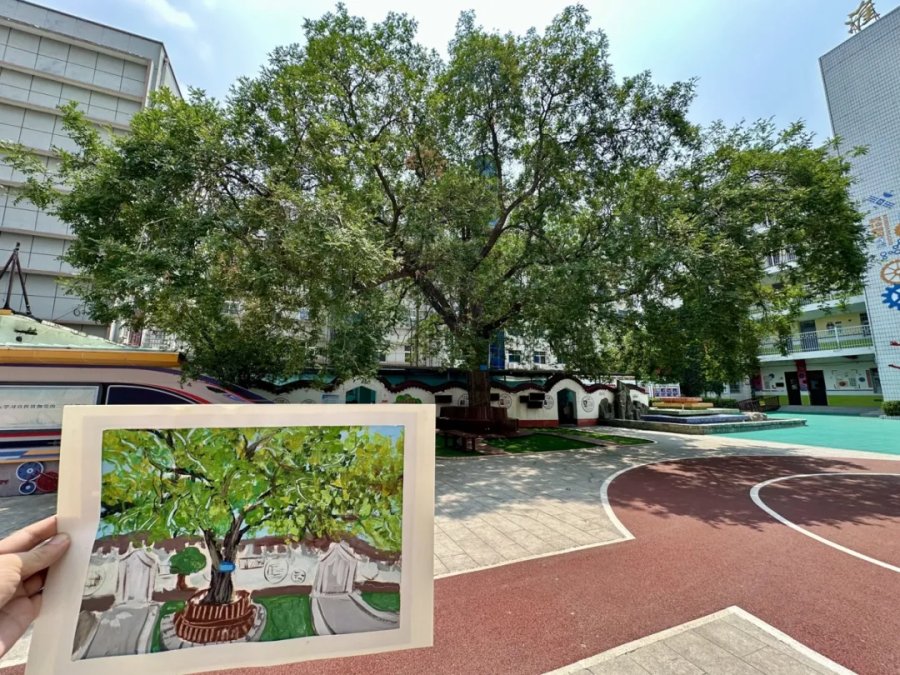 这棵200多岁的“树爷爷”,学校采取了各种保护措施,不仅设置保护性围栏和栈道,避免根部土壤被过度踩踏,还邀请园林专家对它进行“体检”,防治病虫害,定期修剪古树的枯枝。这些措施既确保孩子们能安全地与古树亲密接触,也将守护它的责任传递到每一位学生手中。
