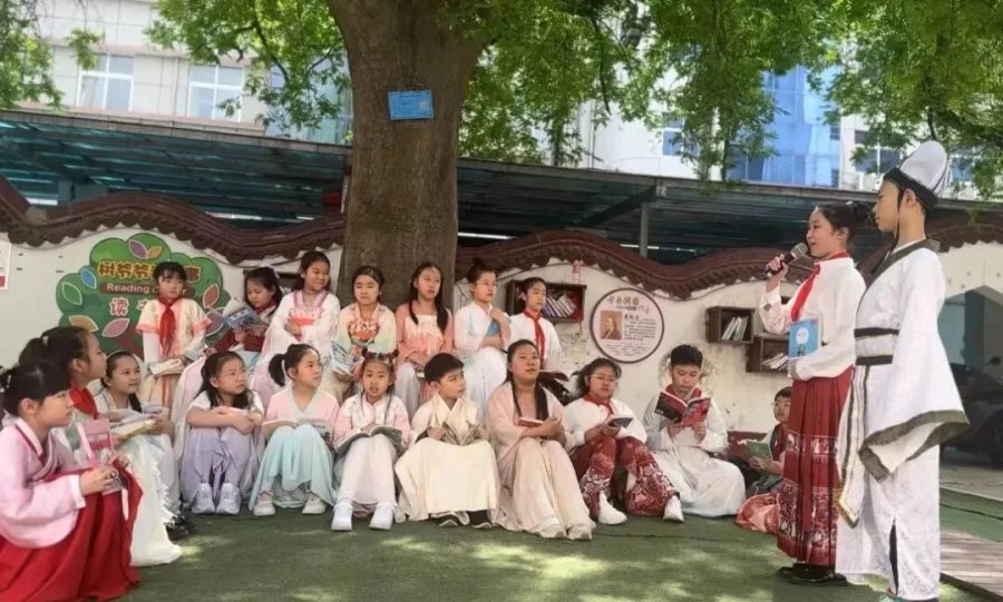 “小学语文需要锻炼孩子们的阅读和表达能力,皂荚树下的读书角不仅是孩子们看书的地方,也是他们分享读书乐趣的地方”,田园告诉我们,“学校有个‘树爷爷讲故事’的活动,就是让学生们利用课余的时间,在皂荚树下大声地朗读,分享自己的读后感。”