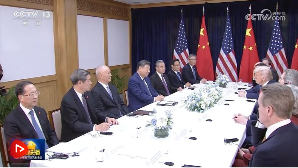 当地时间10月30日,国家主席习近平在釜山同美国总统特朗普举行会晤。