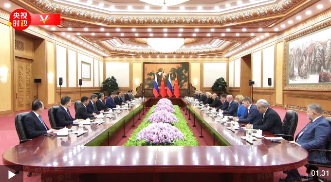 习近平指出,今年以来,中俄关系锚定更高水平、更高质量发展目标,在风高浪急的外部环境中笃定前行。我同普京总统在莫斯科和北京两次会晤,就中俄关系中的战略性、全局性问题深入交流,作出新的谋划和部署。双方要保持密切协调,落实好我同普京总统达成的重要共识,着眼两国和两国人民的根本利益,把中俄合作的蛋糕做好。