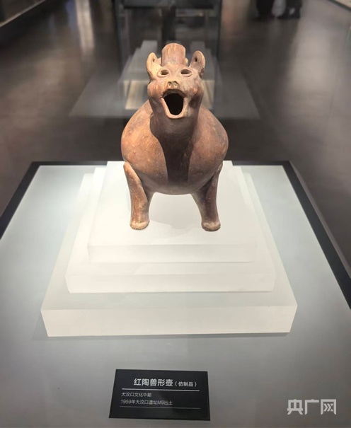 正在展出的红陶兽形壶仿制品(央广网记者 刘博伦 摄)