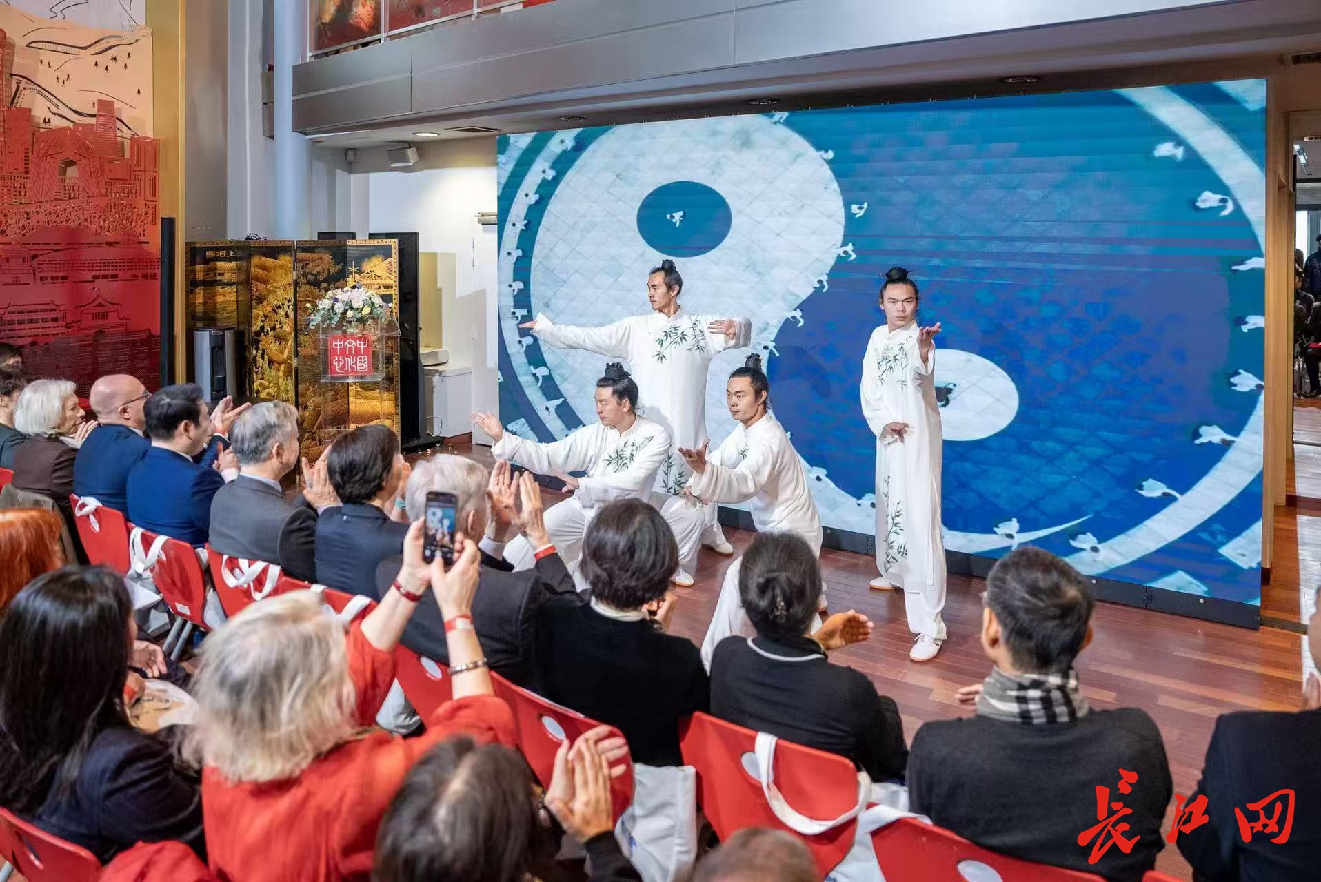 武当功夫团在“知音湖北大美长江”湖北文旅法国推介会上展示武当太极。彭泉锦 摄