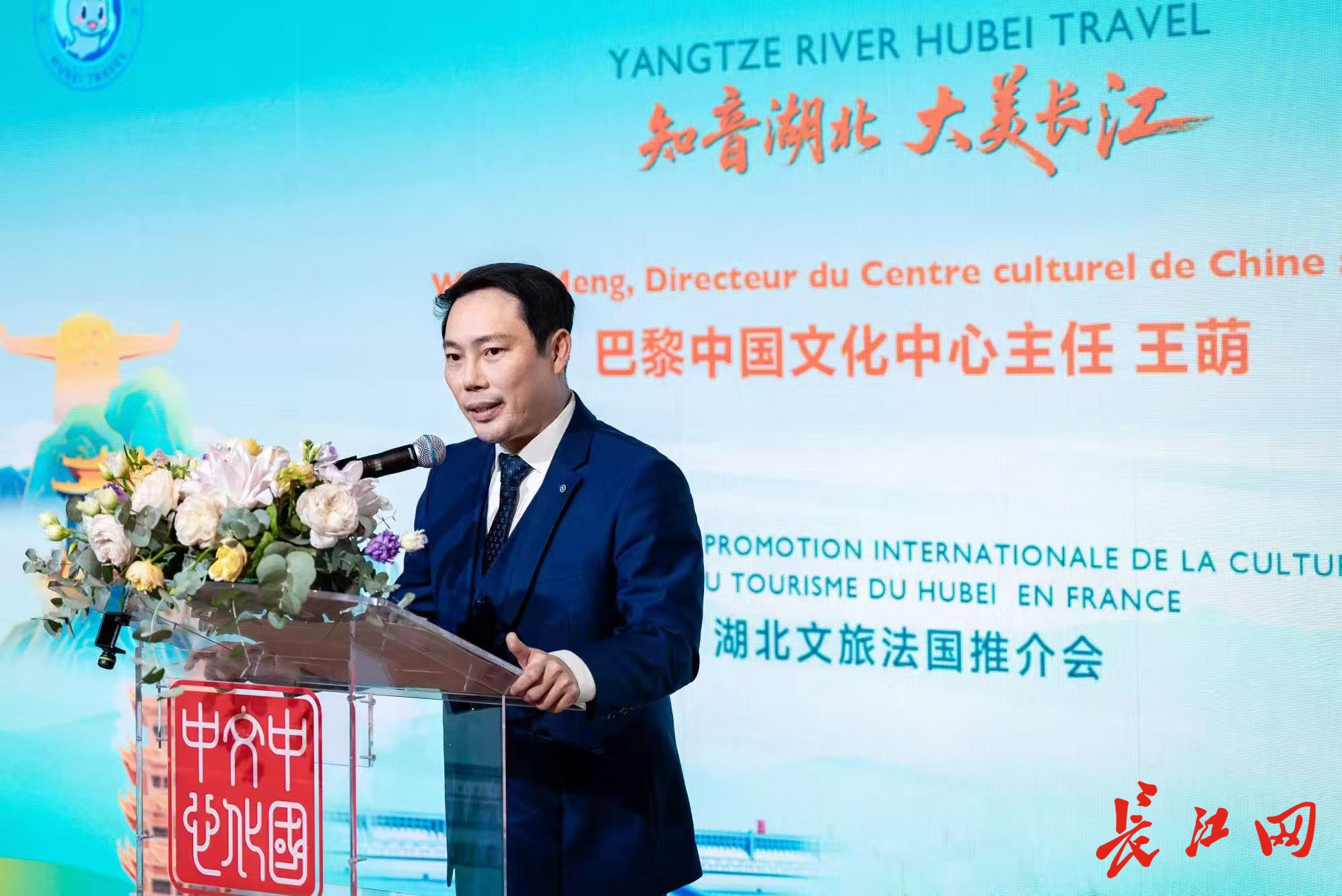 巴黎中国文化中心主任王萌在“知音湖北大美长江”湖北文旅法国推介会上致辞。彭泉锦 摄