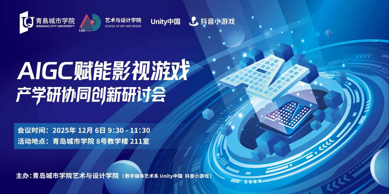 2025年12月6日,由青岛城市学院主办的“AIGC赋能影视游戏产学协同创新研讨会”在学校8-211报告厅隆重举行。本次研讨会汇聚了来自全国高校、头部企业、科研机构及主流媒体的百余位专家学者与行业代表,围绕人工智能生成内容(AIGC)在影视制作、游戏开发、艺术教育等领域的深度融合与协同创新展开深度对话,共同擘画数字创意产业高质量发展新蓝图。