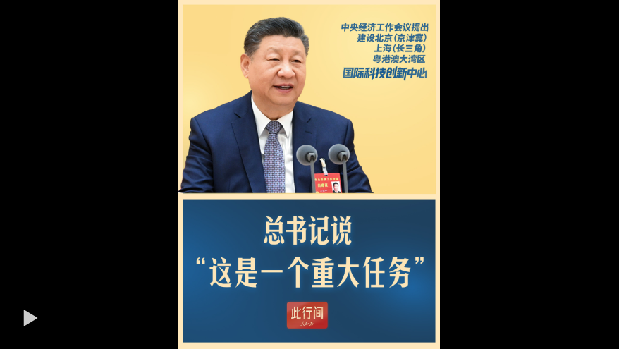 这次中央经济工作会议提出,建设北京(京津冀)、上海(长三角)、粤港澳大湾区国际科技创新中心。习近平总书记说,“这是一个重大任务。”一段视频,带你领会其中的深远考量。