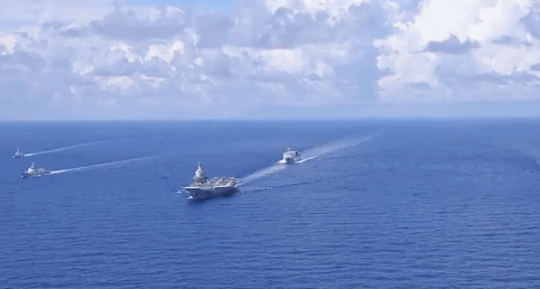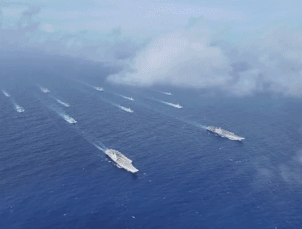 △从上至下依次为辽宁舰、山东舰、福建舰