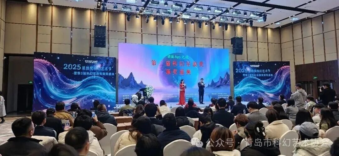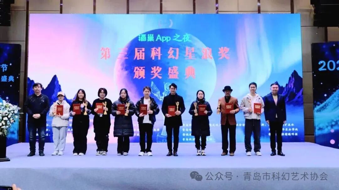 12月16日,由第三届科幻星浪奖艺术节组织委员会主办,青岛市科幻艺术协会、青岛东方影都产业控股集团、青岛黄海学院联合主办,青岛西海岸新区影视文化产业链工会联合会、青岛电影学院、青岛祝兹文化展览馆、影视新艺荟、海发汇、青岛酒巢网络科技有限公司协办,酒巢APP独家冠名的2025星浪奖科幻艺术节暨第三届科幻星浪奖盛典在青岛西海岸新区隆重举办。