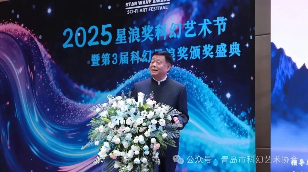 葛云峰在致欢迎辞中代表本届组委会,对莅临出席、热情助力第三届星浪奖科幻艺术节盛会的各级主管部门、影视文学艺术界、媒体界等领导和嘉宾朋友们表示了由衷感谢和热烈欢迎。并向与会嘉宾报告了前两届星浪奖所取得的成果。他表示,青岛是中国电影工业化的重要基地,我们因一项科幻公益事业从四面八方汇聚到青岛,创造了一种难得的相互赋能的氛围和产业生态。这种生态不仅让科幻创作者们找到了归属感,也让青岛成为了中国科幻艺术的重要阵地。期待科幻星浪奖能成为培养青年科幻人才的摇篮。同时,人工智能技术正以前所未有的速度重塑影视产业格局,期待更多的创作者能够将AI技术应用于科幻创作,共同探索科幻艺术的新边界和产业新机遇。星浪奖将牢记自己的使命,以推动和见证中国科幻影视和文学相互赋能、不断发展为永久公益追求,团结并服务好广大科幻创作者,共同为新时代科幻事业而努力!